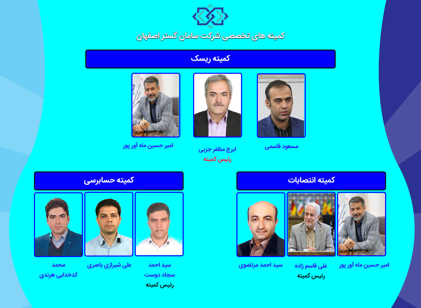 کمیته های تخصصی شرکت سامان گستر کمیته های تخصصی هلدینگ سامان گستر اصفهان شامل کمیته های ریسک، انتصابات و.. می باشد.اعضای کمیته ریسک
